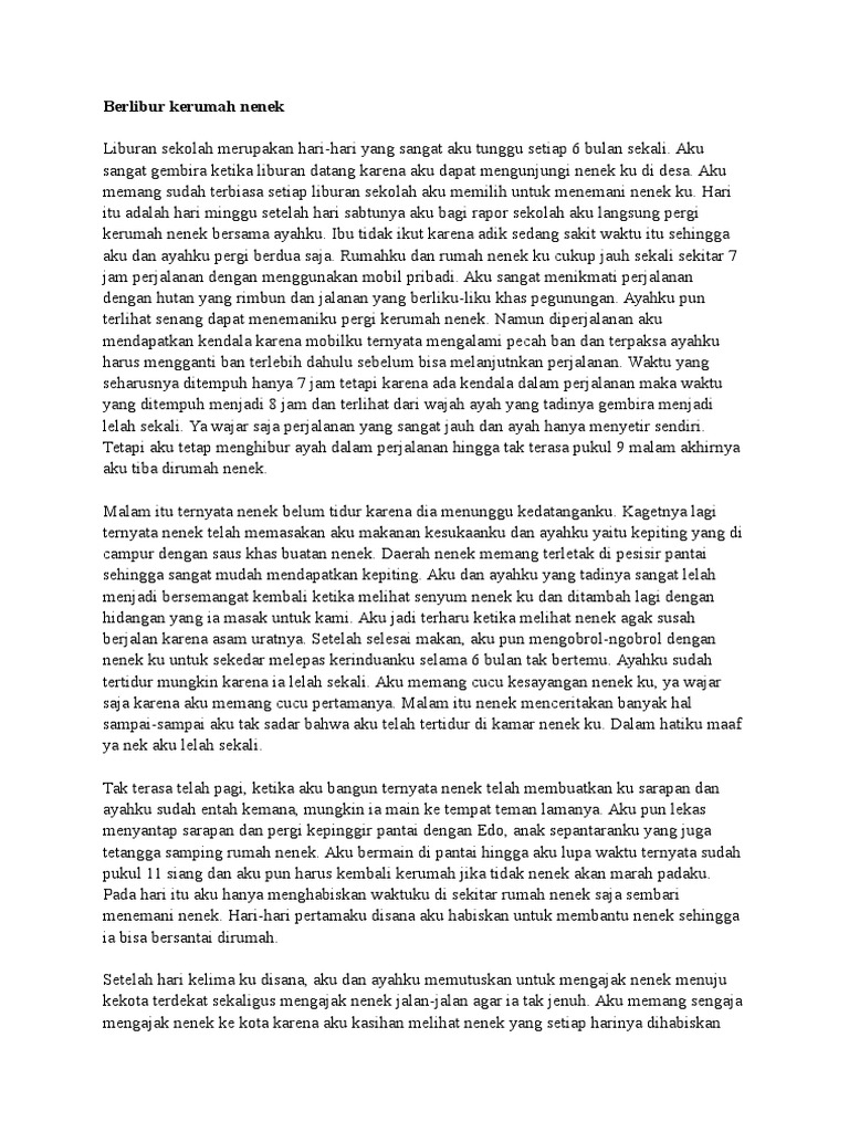 Besok adalah hari pertama liburan aku sangat senang dan bahagia. Liburan sekolah adalah hal yang sangat ditunggu dan tentu saja mempunyai kesan tersendiri. Setiap orang pasti mempunyai pengalamannya masing masing.