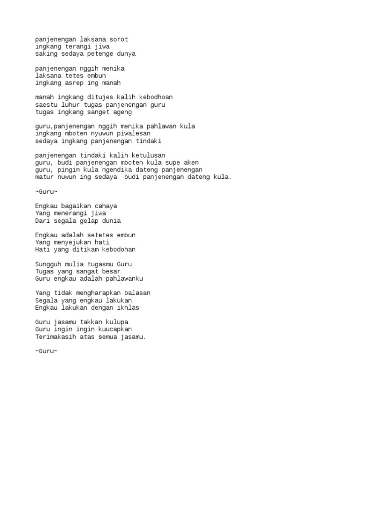 Guruku Puisi Bahasa Jawa Tentang Guru